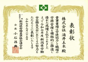 2025年9月25日(木) 新潟テルサにおいて開催された、令和7年度新潟県労働安全衛生大会において、一般社団法人 新潟県労働基準協会連合会様から当社が労務管理優良事業場として新潟県労働基準協会連合会長賞を受賞いたしました […]